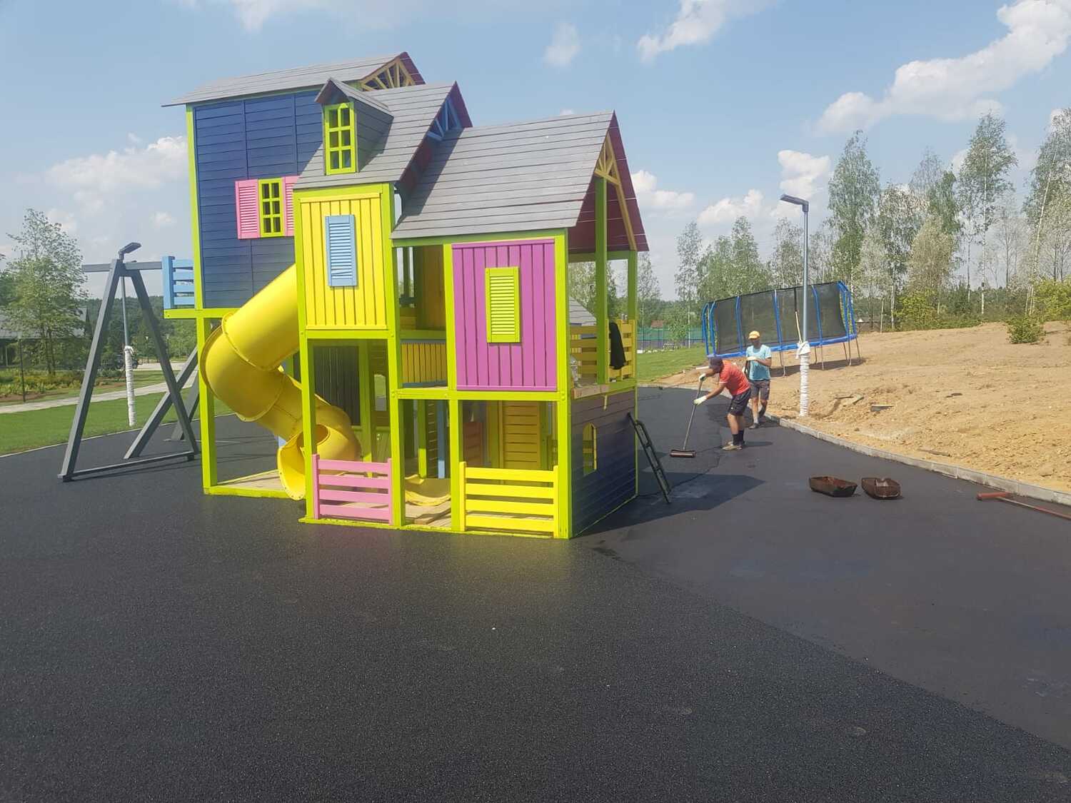 Заливка резинового покрытия на детскую площадку в посёлке